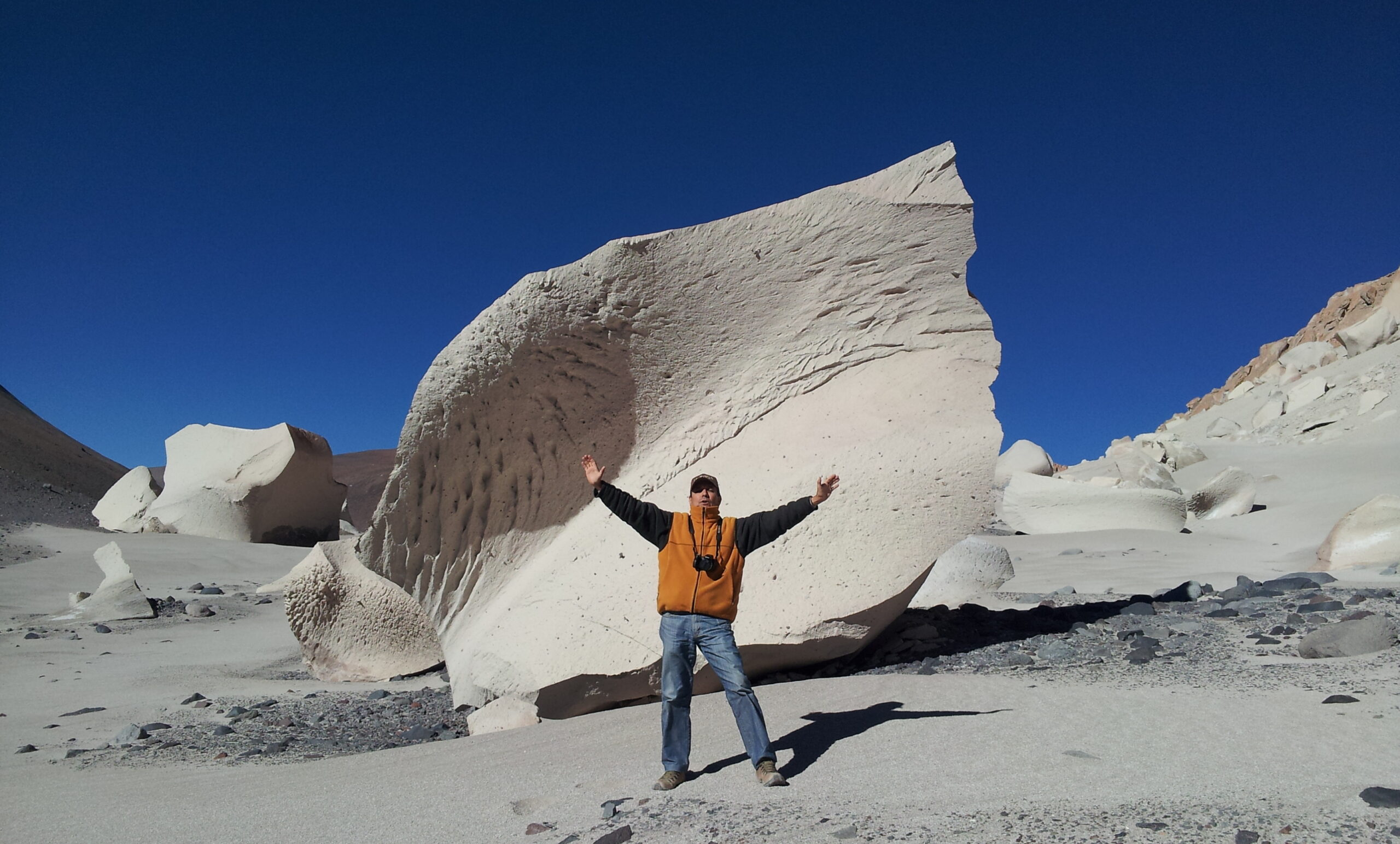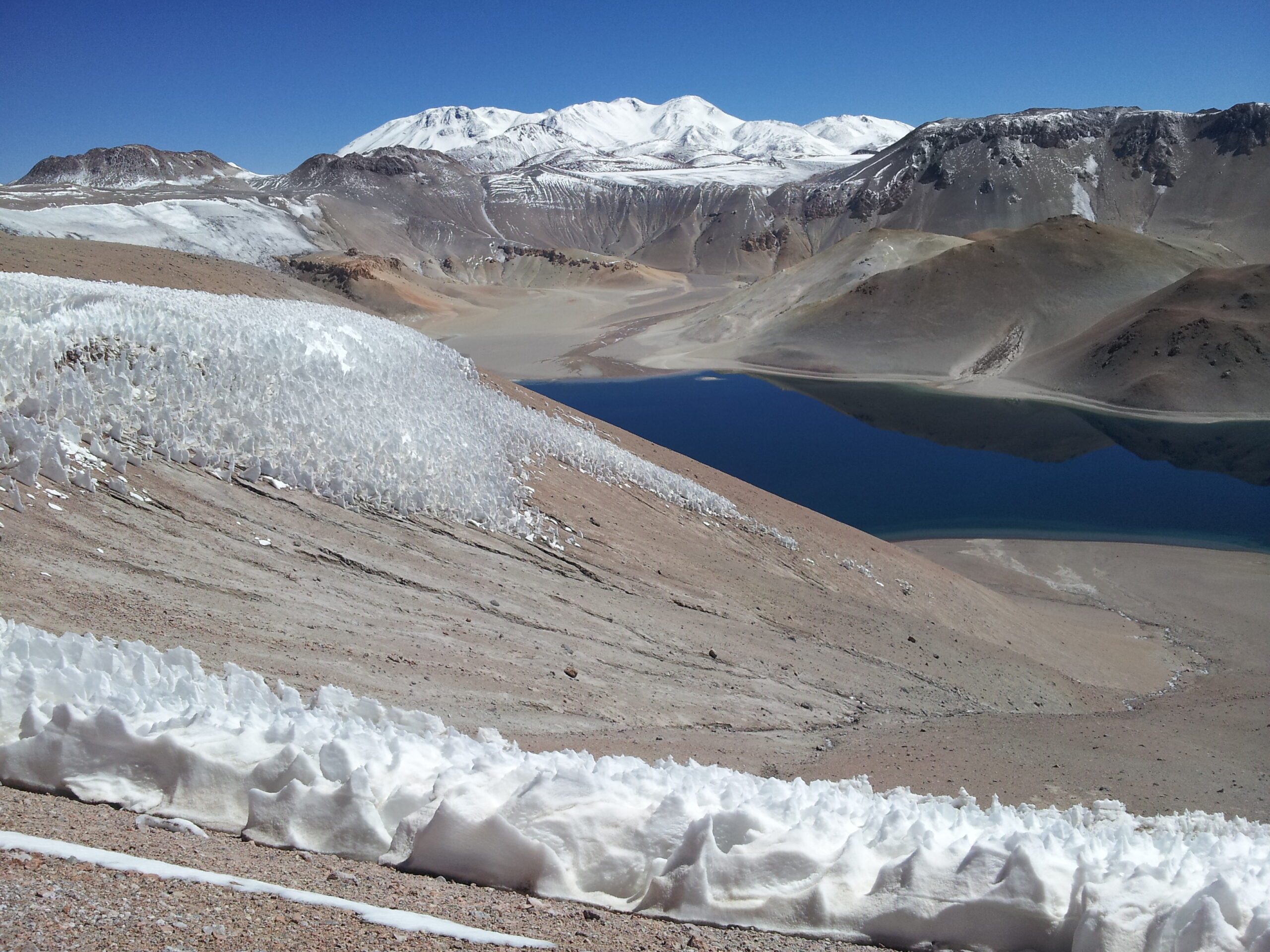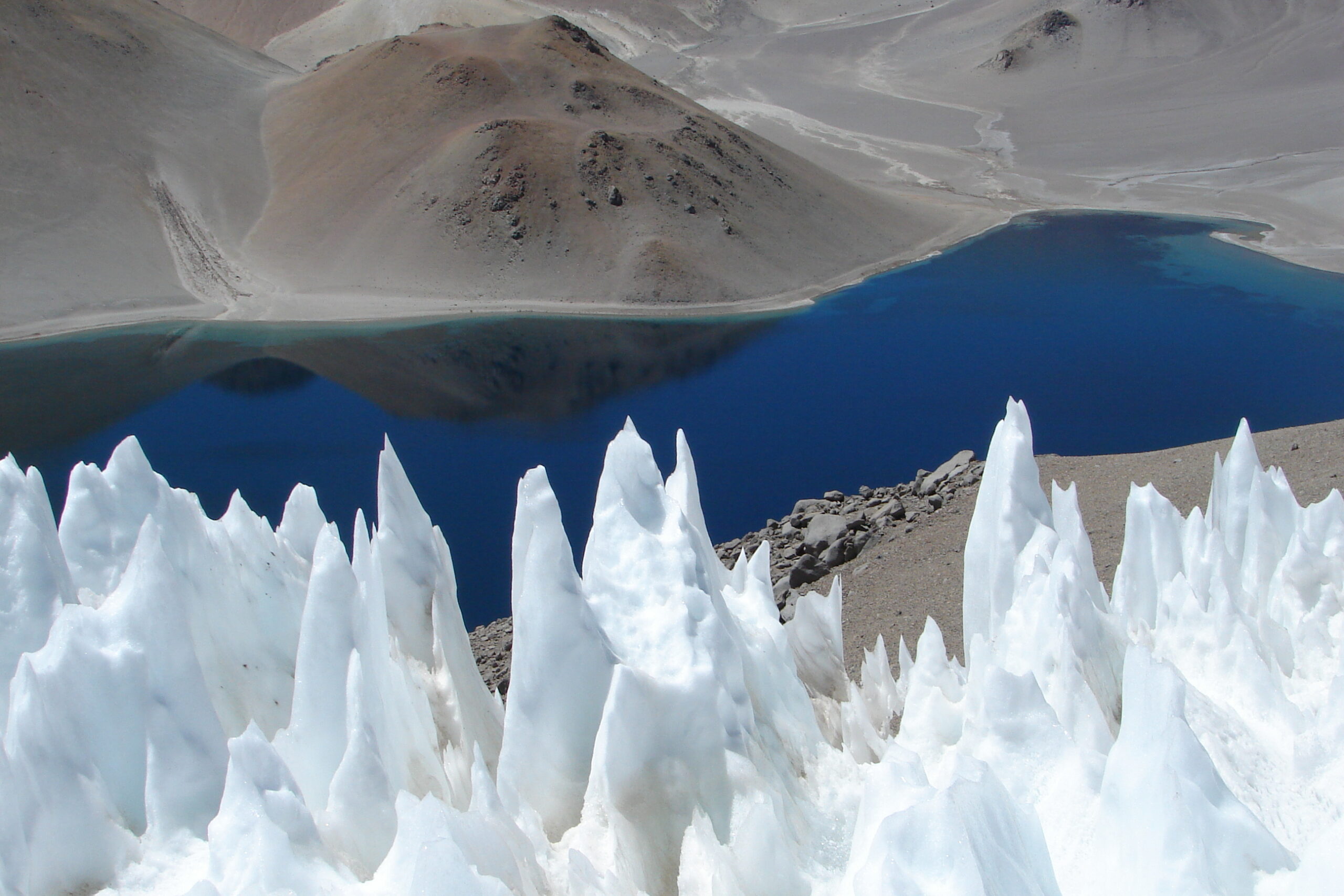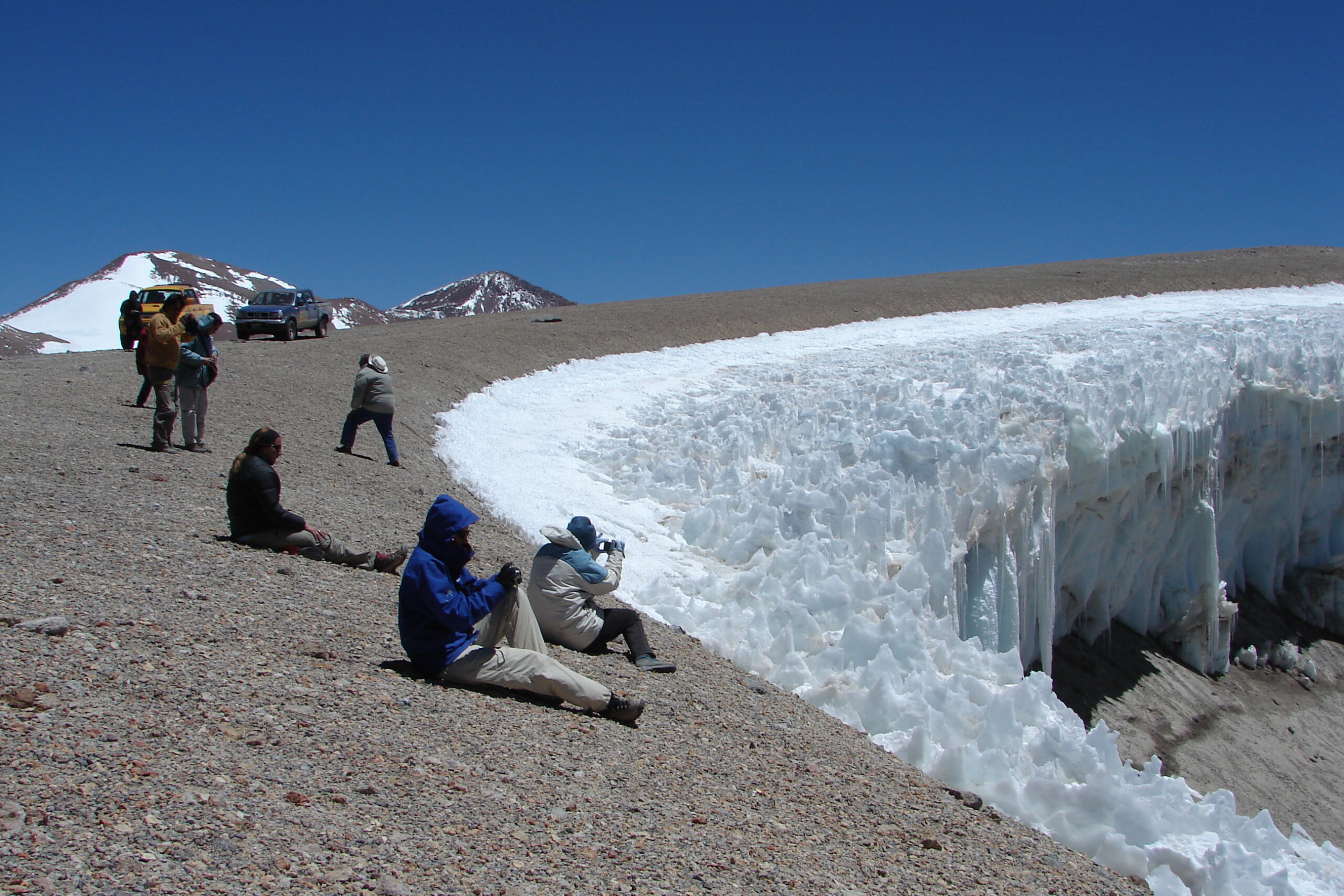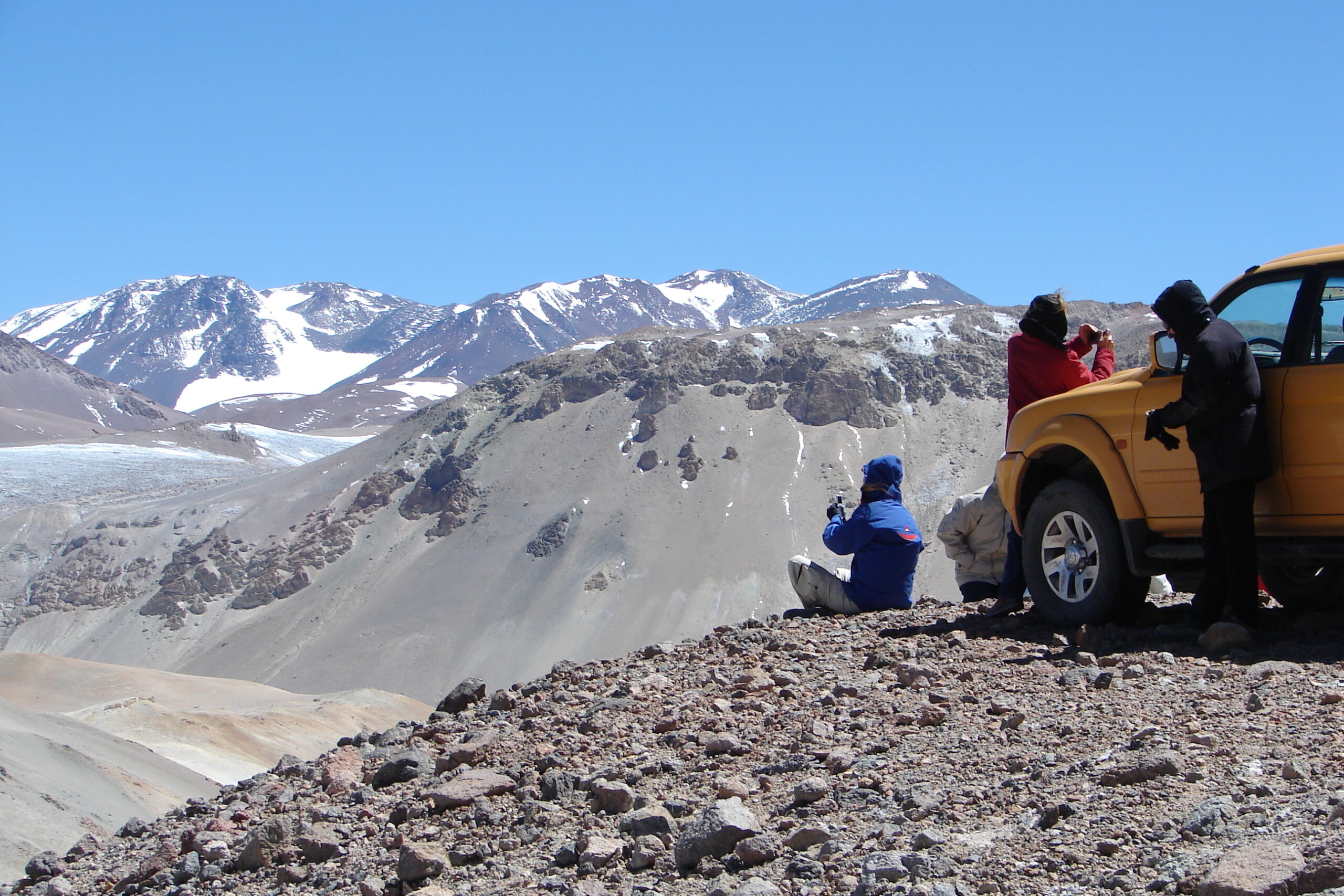 4 | JAGUE – LAGUNA BRAVA – CRATER CORONA DEL INCA – JAGUE. Temprano en la mañana, iniciamos la travesía ascendiendo a la Cordillera por la multicolor Quebrada del Peñón hasta el portezuelo de la laguna a 4.370 m.s.n.m. donde se divisa por primera vez la Laguna Brava en el extenso altiplano cordillerano en un majestuoso marco de picos volcánicos nevados. Rodeamos la laguna por el norte hacia Pampa de Veladero, atravesamos los arenales de cenizas volcánicas, los Farallones del Campo de Piedra Pómez Riojano y el Cañón de las Rocas de lava, siempre flanqueados por los grandes Volcanes como el Bonete, el Veladero y el Reclus, entre otros. Ya al mediodía comenzamos a ascender sobre el Cono del Volcán Corona del Inca hasta arribar finalmente al borde mismo del profundo y gran cráter a los 5.500 m.s.n.m., donde como broche de oro se nos presenta majestuosa en su interior una laguna de color azul intenso y grandes glaciares en sus crestas, conjugando un marco de incomparable belleza escénica al pie del Imponente Monte Pissis. Pasado el mediodía iniciamos el retorno por Laguna Brava donde hacemos un picnic y bajar nuevamente por la Quebrada del Peñón a Jagüe. Alojamiento y cena. |